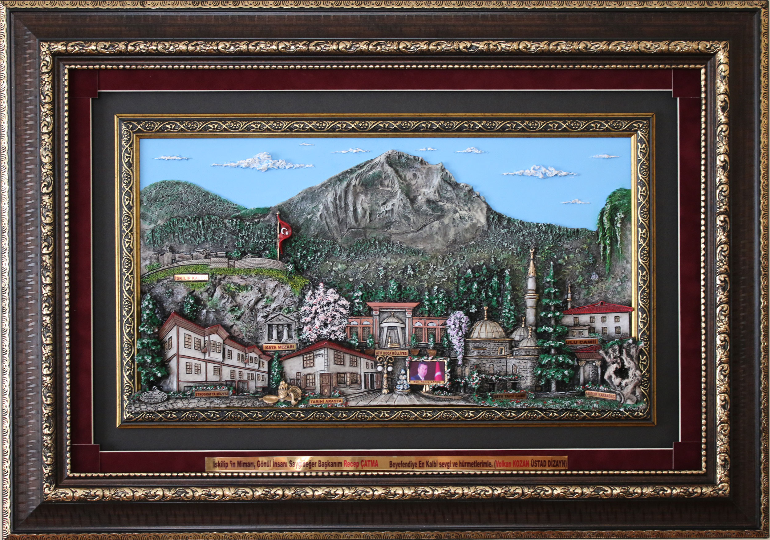 Çorum'un İskilip ilçesinin birçok doğal güzelliklerinin, tarihi değerlerinin arasından, zihinlerde yer etmiş nadide köşelerinin, tam bir sanat disiplini ve estetiği ile şekillendirilerek tabloya aktarılmış halidir. Boyamada eskitme tekniği kullanılmış ve yer yer altın varaklar uygulanmıştır.