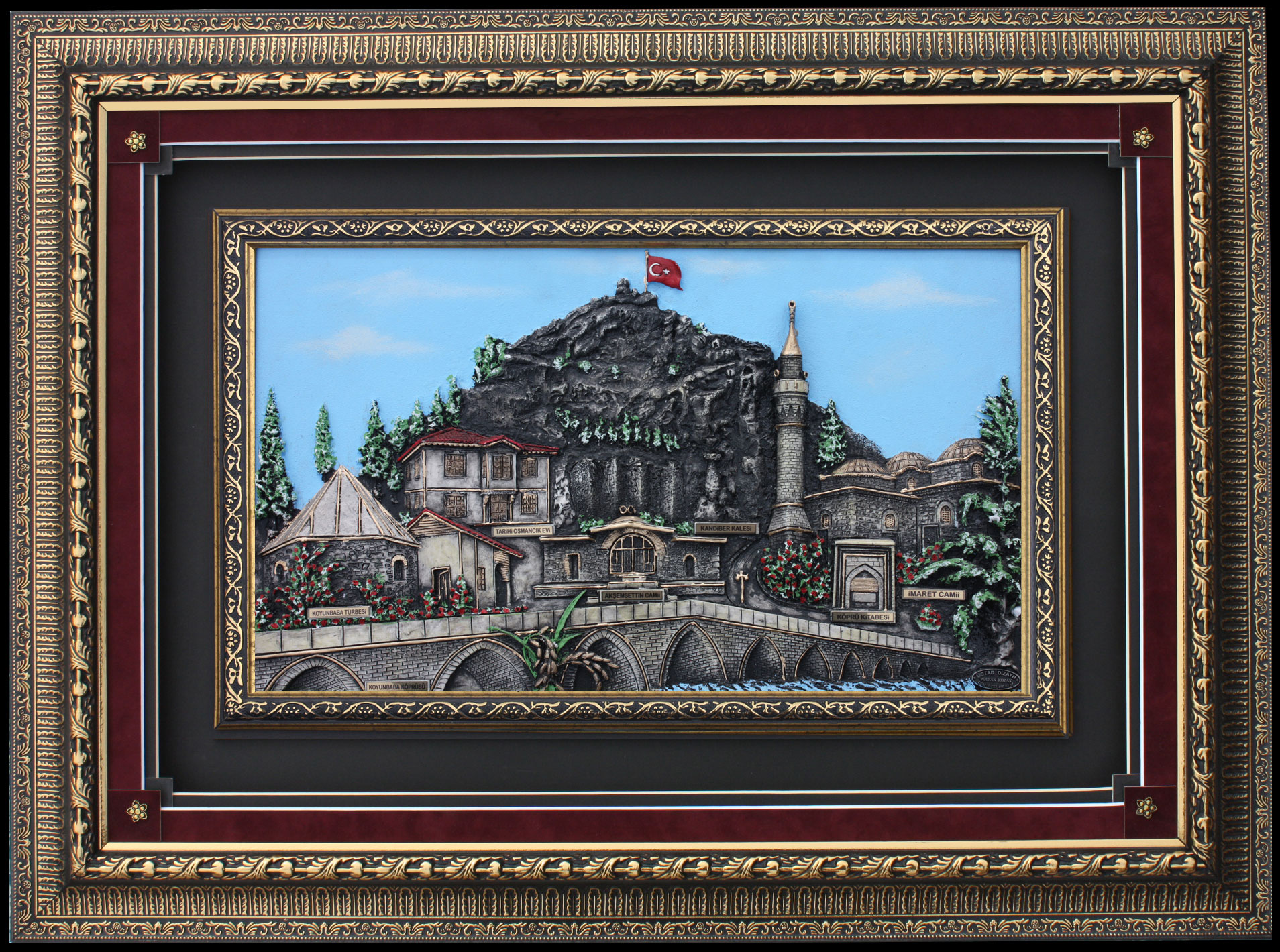 Çorum ili Osmancık ilçesinin birçok doğal güzelliklerinin, tarihi değerlerinin arasından, zihinlerde yer etmiş nadide köşelerinin, tam bir sanat disiplini ve estetiği ile şekillendirilerek tabloya aktarılmış halidir. Boyamada eskitme tekniği kullanılmış ve yer yer altın varaklar uygulanmıştır.